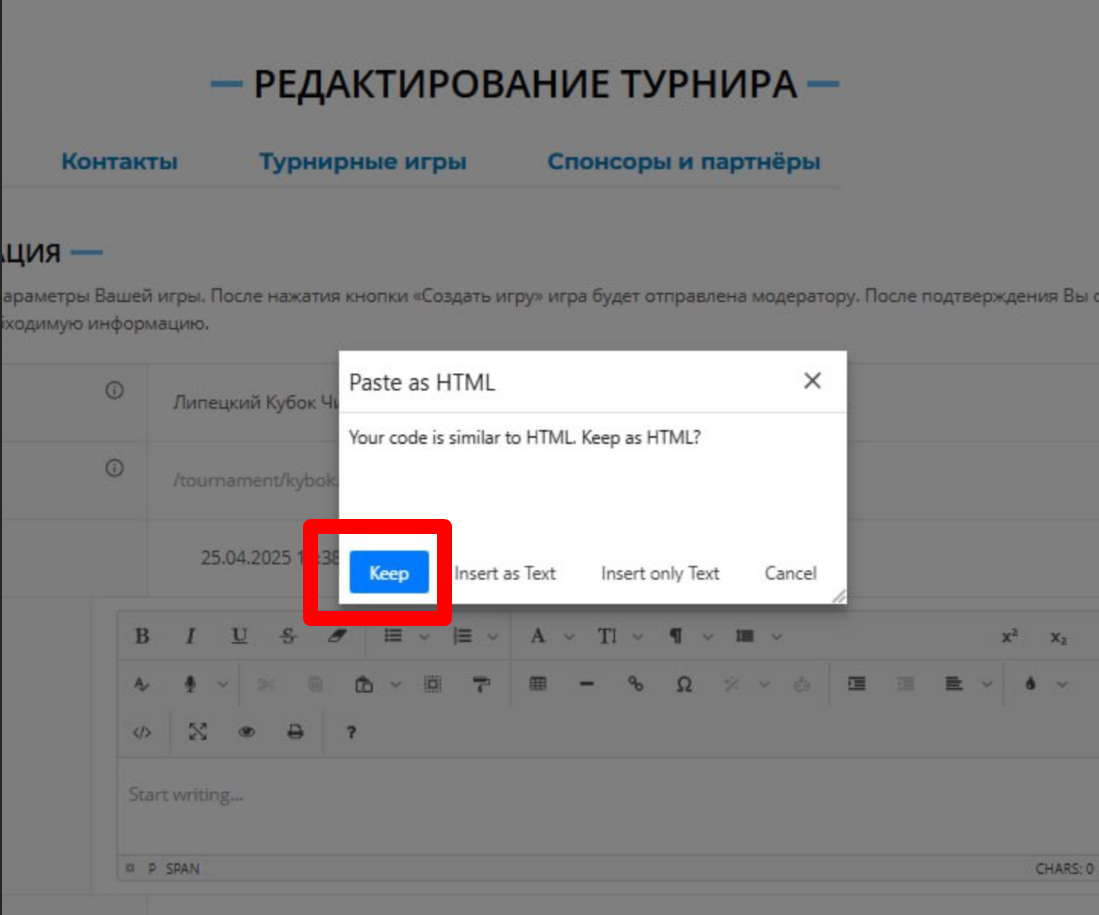 Скорее всего, вы в аккаунте, с которого нельзя создавать Чистые Игры. Это значит, что статус вашего аккаунта — user. Даже если ваша игровая роль Администратор, в статусе user не добавить спонсоров.